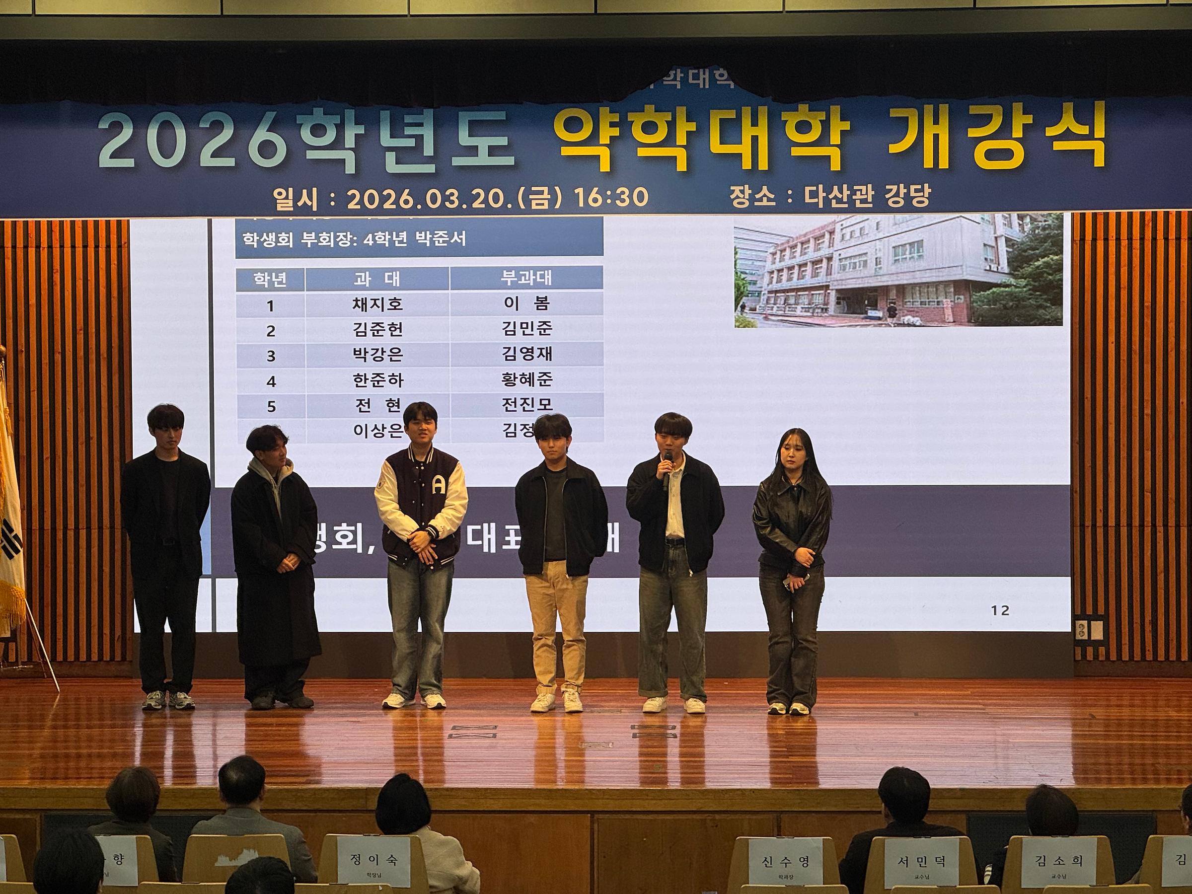 이날 행사는 팝크루의 축하 공연으로 활기차게 막을 열었으며, 이어진 정이숙 학장님의 인사 말씀에서는 “신입생들의 약학대학 입학을 축하하는 동시에, 재학생들이 선후배 사이는 물론 교수님과 교학팀과도 더욱 활발히 교류하고 소통하길 바란다”는 따뜻한 당부가 전해졌다.