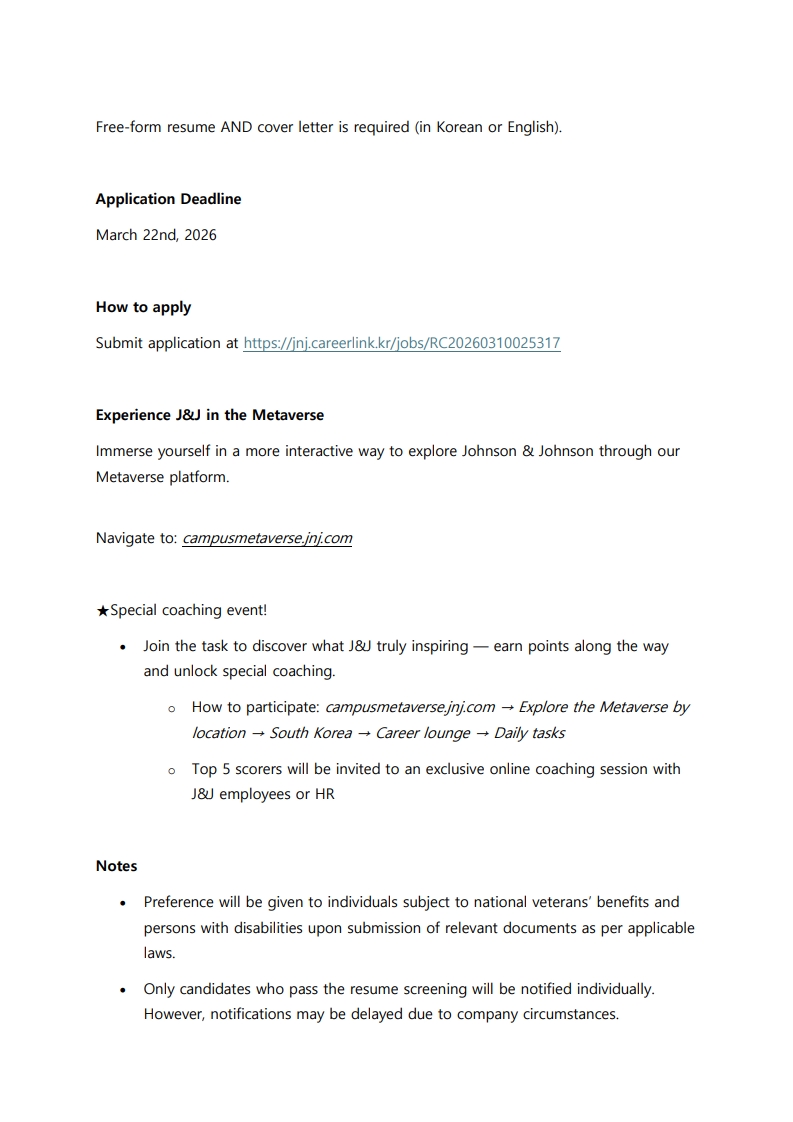 공고 확인 및 지원 경로:https://jnj.careerlink.kr/jobs/RC20260310025317